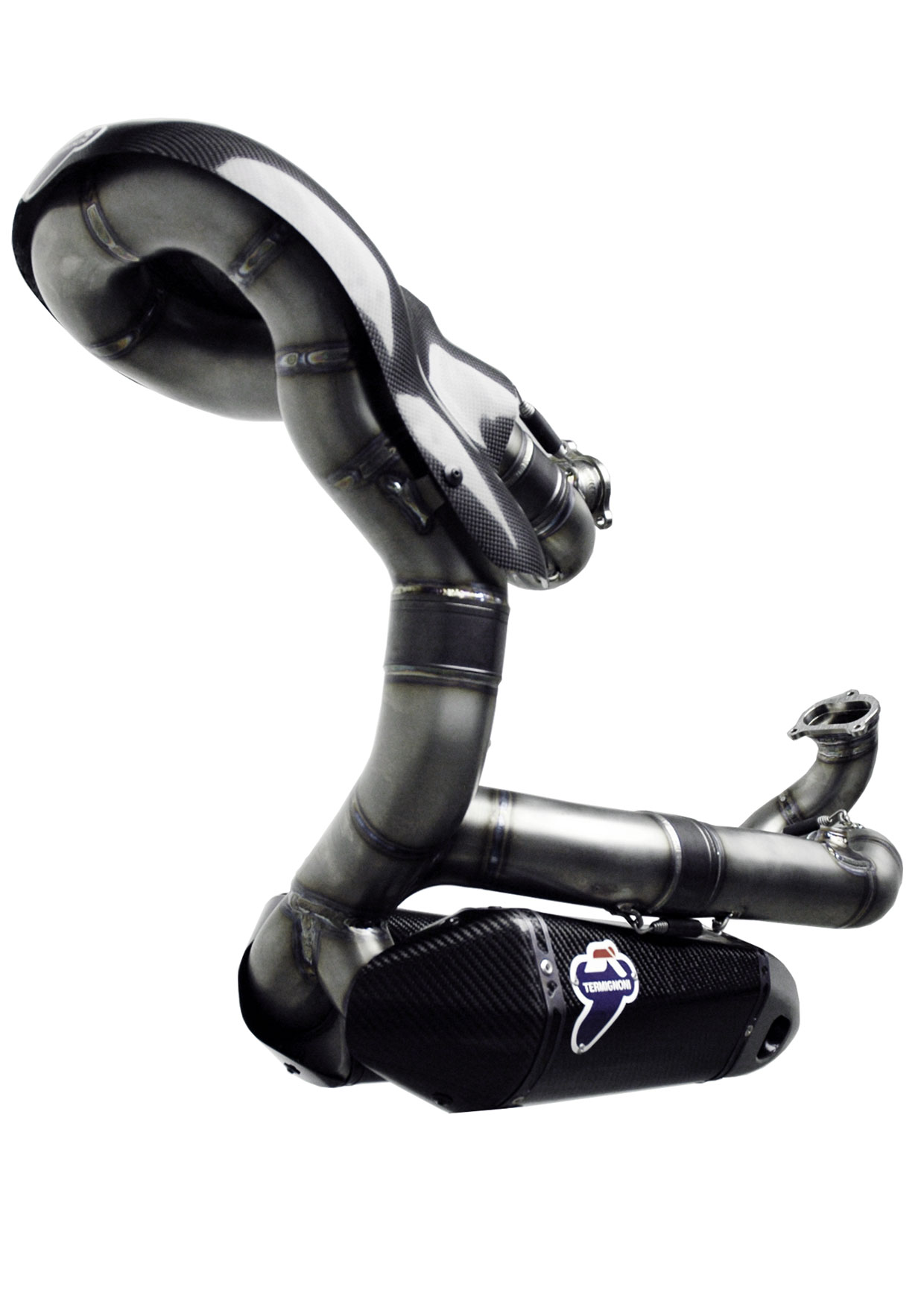 • LET OP: Bij motoruitlaten wordt Titanium toegepast in verschillende kwaliteits gradaties. Voor deze Termignoni voorbocht wordt de legering cuNb gebruikt. Deze legering wordt normaalgesproken niet snel toegepast bij motoruitlaten gezien de extreem hoge kosten en wordt daarom meestal alleen toegepast in speciale uitlaten voor Superbike en MotoGP. De voordelen van deze speciale Titanium legering zijn het extreem lichte gewicht, de hoge temperatuur resistentie, stabiliteit en lange levensduur