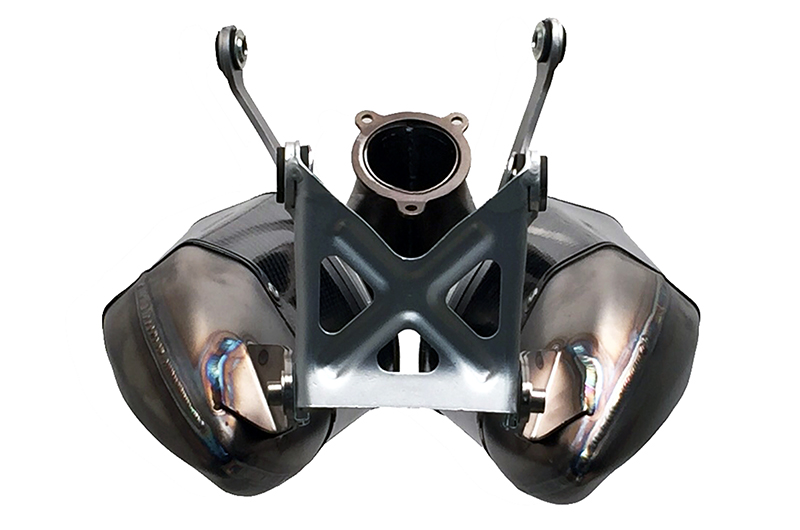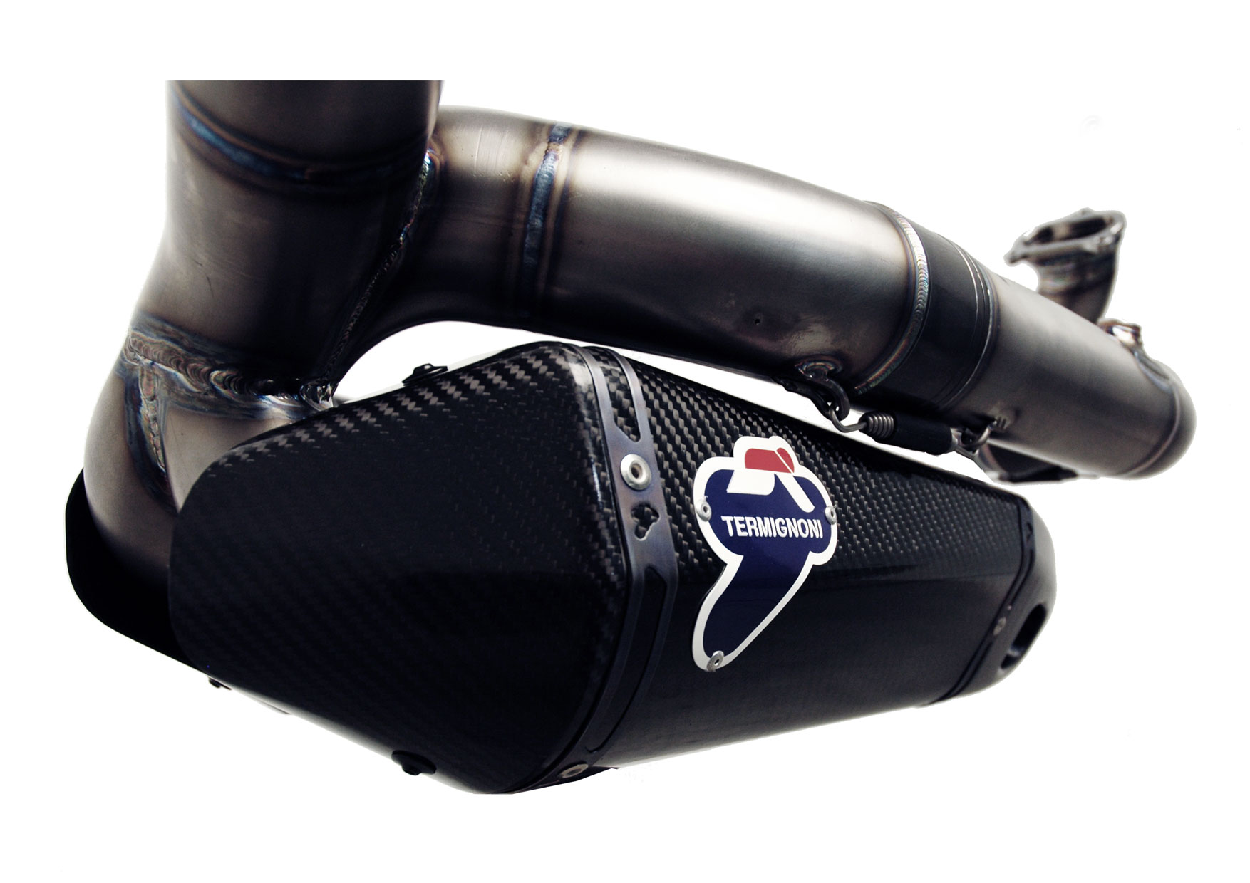 Termignoni introduces the new silencers for Ducati Panigale, made in carbon and titanium CUNB, the same used by the Termignoni Reparto Corse to realize the racing exhausts. The CUNB is a special titanium alloy that has excellent formability in ambient temperature and high mechanical strength even after the 600 °C, and resist oxidation above 800 °C. This allows us to reduce significantly the weight, while still providing a high level of performance and durability of the exhaust, much higher of the systems made of a commercial titanium alloy. Over the exclusive materials, that permits a lightweight of only 1,5 kg per silencer, another characteristic is given by the frontal exit of the gas, a solution that optimize the performance and the design. The silencers can fits on Ducati Panigale models 899 – 1299 – 1199R (MY 2015) and are supplied with a dedicated air filter.