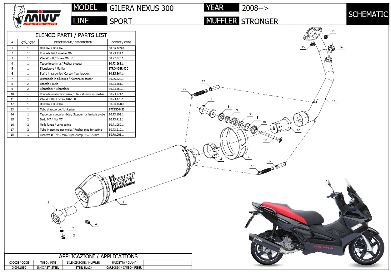 Mivv Stronger RVS Black Compleet 1in1 Uitlaatsysteem met E-keur Gilera NEXUS 300 2008 2013