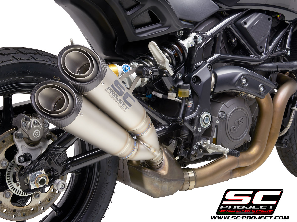 SC Project Twin S1 Dubbele Titanium Einddemper zonder E-keur Indian FTR1200 2019 > 2020