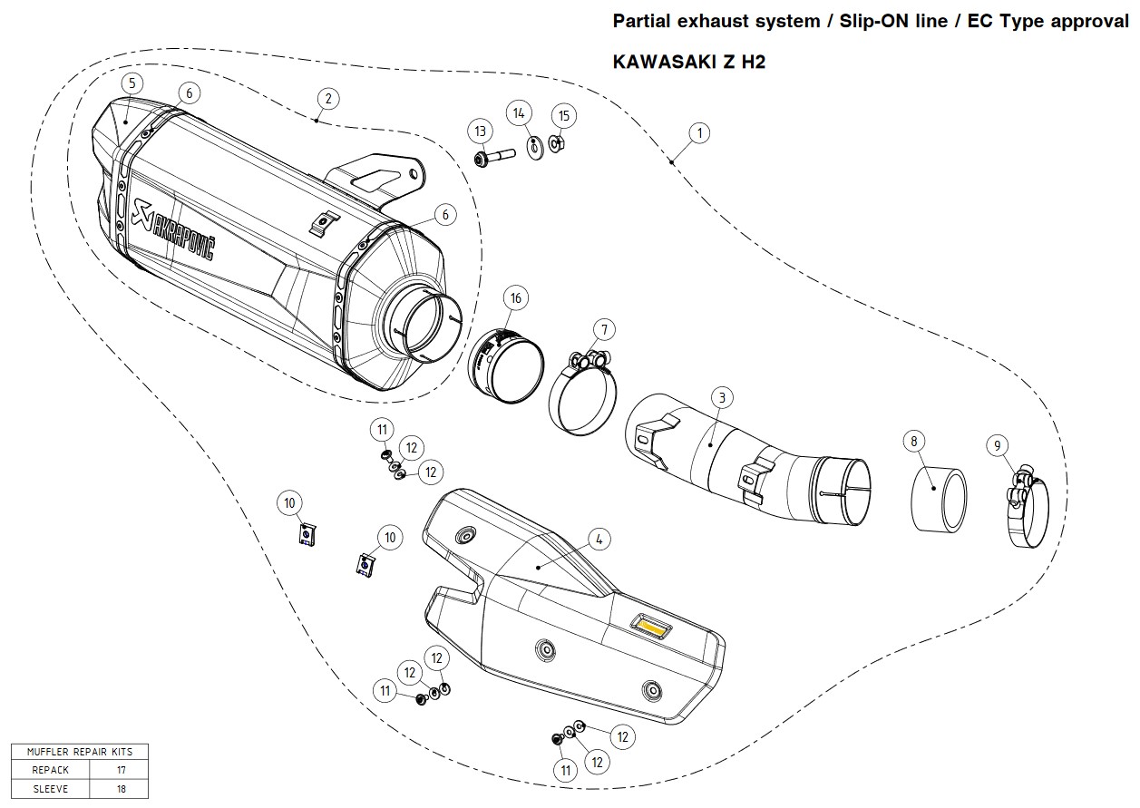 Akrapovic Slip-on Line Titanium Black Einddemper met E-keur Kawasaki Z H2 2020