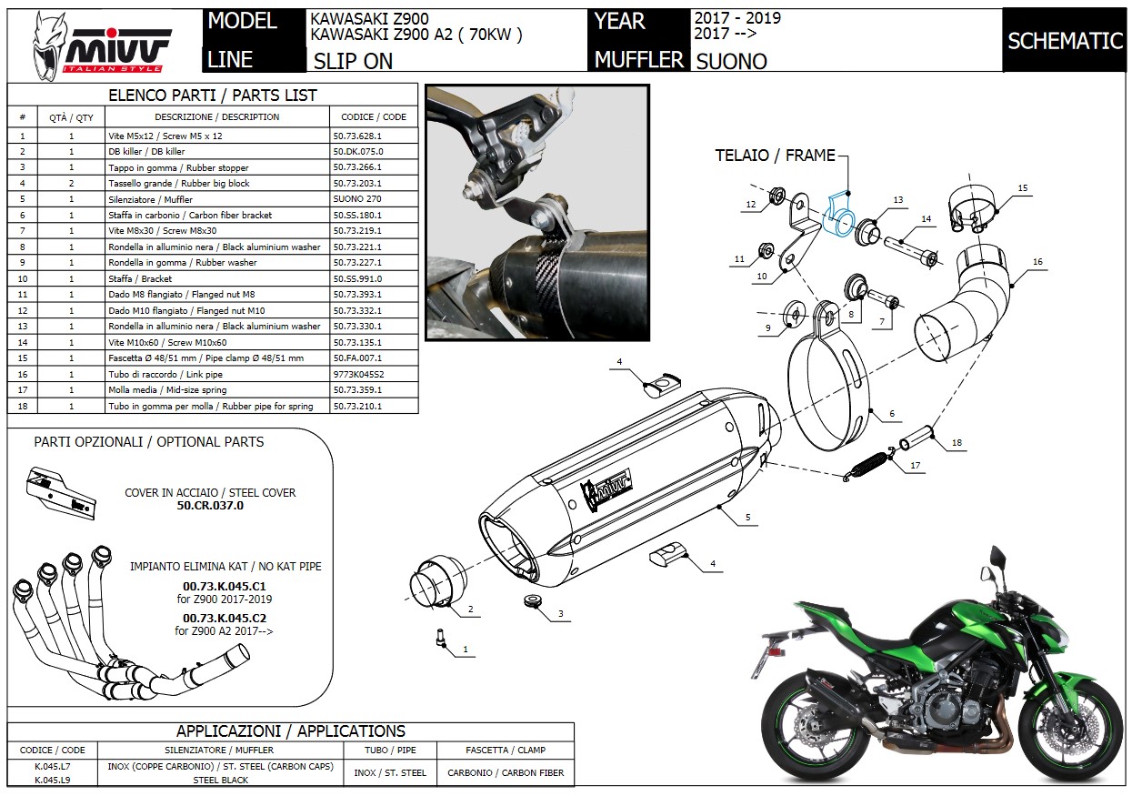 Shark DSX-5 Super Short Aluminium met RVS Black Endcap Einddemper met E-keur KAWASAKI Z900 2017 2018