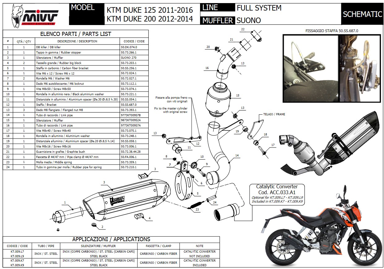 Mivv Suono RVS Black Compleet Uitlaatsysteem met E-keur KTM 125 DUKE 2011 > 2016