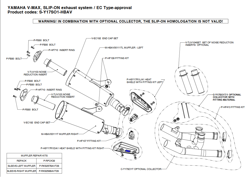 Slip-Ons represent the first step in the exhaust system tuning process, and they offer a great balance between price and performance. Sporty and lightweight Slip-On Line exhaust systems are a perfect match. Titanium mufflers with CNC machined aluminum end caps, fit the exterior line of the V-MAX perfectly and add a clean powerful image. In addition to design effects and improved power delivery, Slip-Ons also enhance the sound. Let your bike stand out with more power, beautiful design, and the unique AkrapoviÁ sound of Slip-Ons. Installation is a snap.